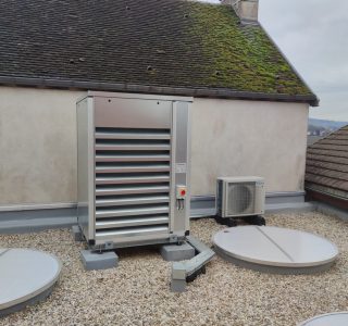 Le placement du VRV en toiture à nécessité d’installer le groupe dans un caisson acoustique afin de réduire les nuisances sonores.